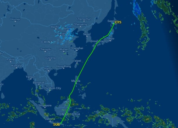 The next day, it took off from Surabaya at about 9am local time and landed in Hokkaido.