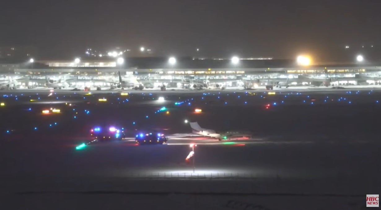 Featured image adapted from HBCニュース 北海道放送 on YouTube and FlightAware.