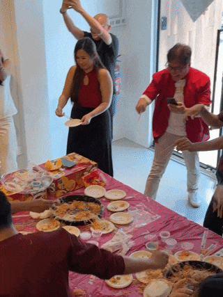 However, during the lo hei on 12 Feb, several PropertyLimBrothers staff were seen tossing food at one another instead.