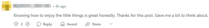 A couple of users chimed in to agree, with one praising the thread starter for “knowing how to enjoy the little things”.