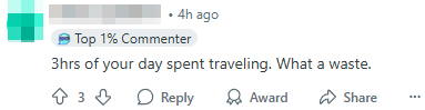 On the other hand, many users strongly disagreed that long public transport journeys are therapeutic, with some describing them as a waste of time.
