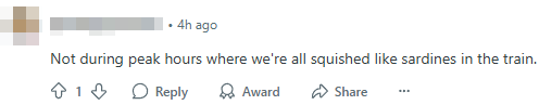 Several users also expressed their aversion to being “squished like sardines” in trains or buses during peak hours.