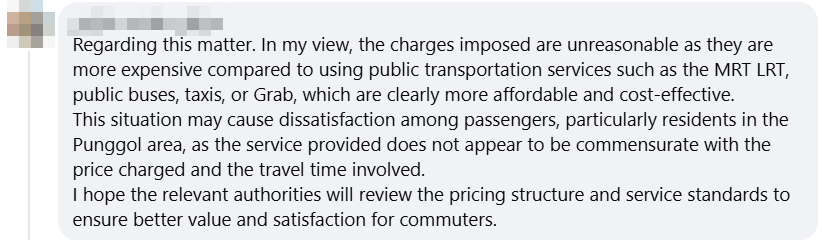One netizen added that Punggol residents will likely not use the service, given the price.