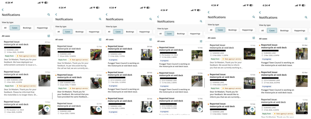 He said that the incident happened at the void deck at 220C Sumang Lane, and the first bike appeared on 13 Nov, 2025.