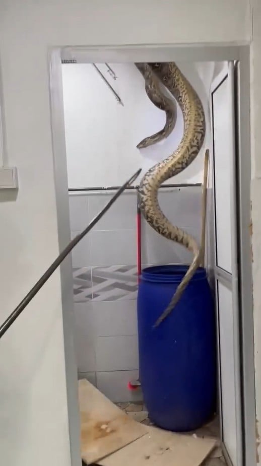 A gigantic 60kg python terrified a woman in Malaysia when it broke through her bathroom ceiling recently.