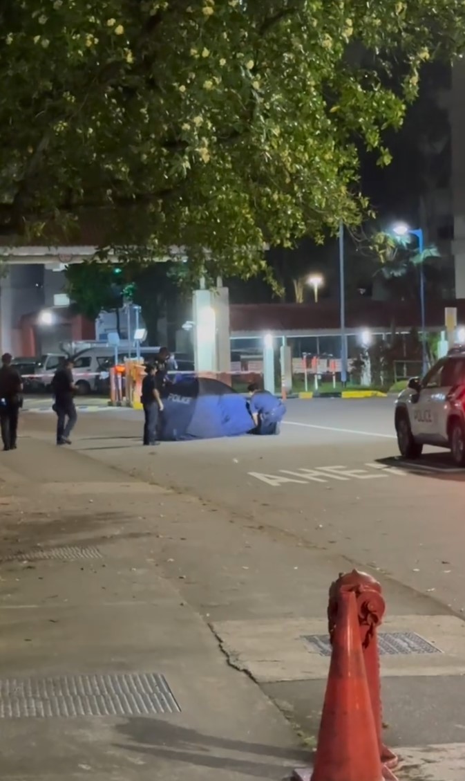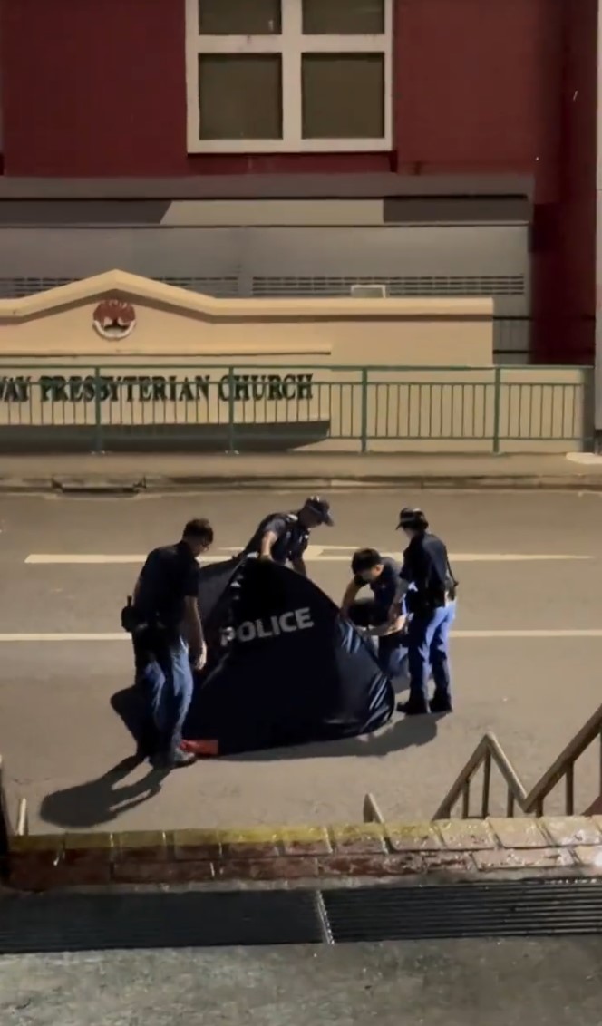 According to Shin Min Daily News, a nearby resident who went to close the windows at 3am saw the police officers and the blue tent.