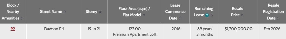 The record-breaking flat is located in 92 Dawson Road, according to HDB resale flat records.