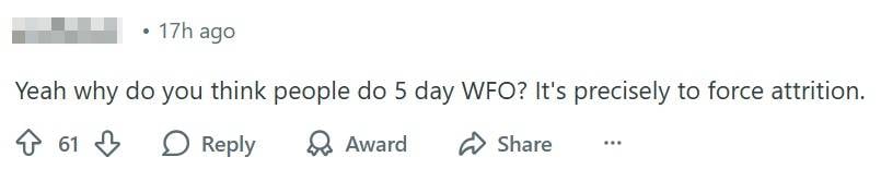 One commenter also suggested that stricter return-to-office requirements could be another form of “quiet firing”.