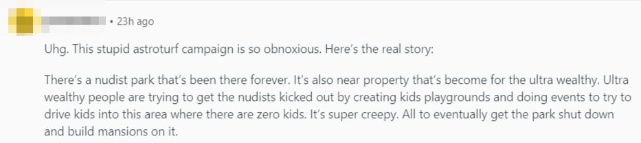 Some netizens suggest that the suit is an attempt by a group of affluent homeowners to close the park, potentially paving the way for gentrification.