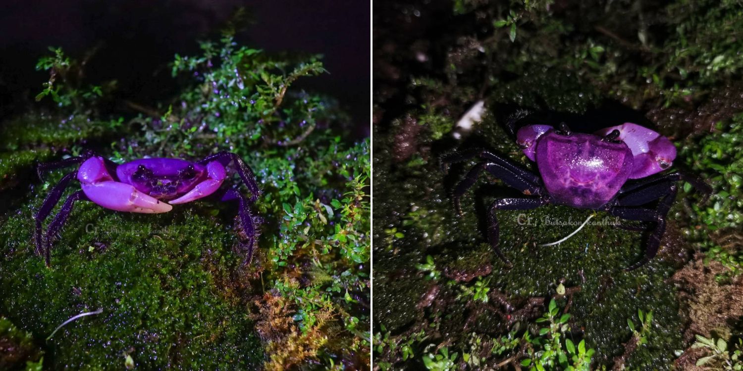 Photos showcasing a rare sighting of dazzlingly purple panda crabs found at a national park in Thailand recently went viral.
