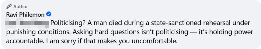 RDU’s Ravi Philemon criticises NDP after participant’s death during rehearsal, netizens call his post ‘distasteful’