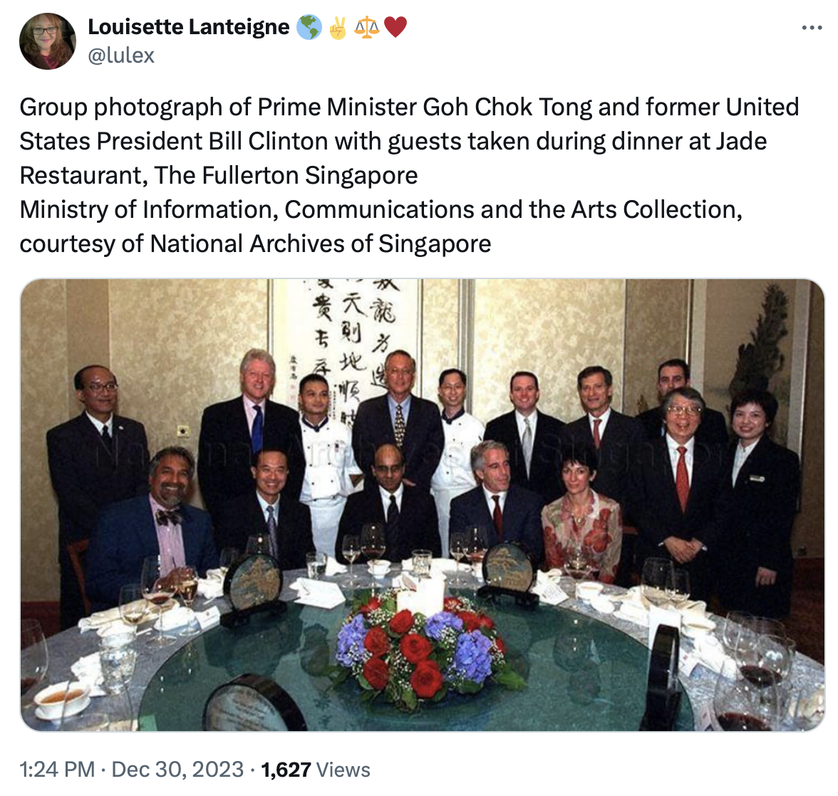 Also read: Photo of S’pore politicians with Epstein resurfaces, linked to 2002 dinner for Bill Clinton