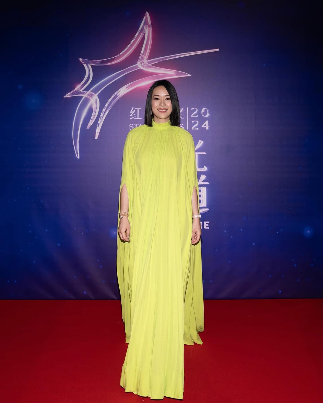 Lim ultimately opted for a loose-fitting, neon green Gucci gown.