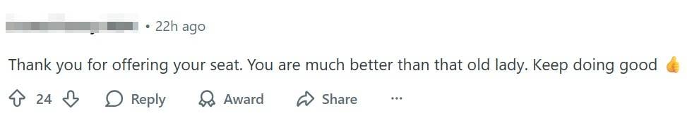 One netizen thanked the OP for giving up their seat and urged them to “keep doing good”.