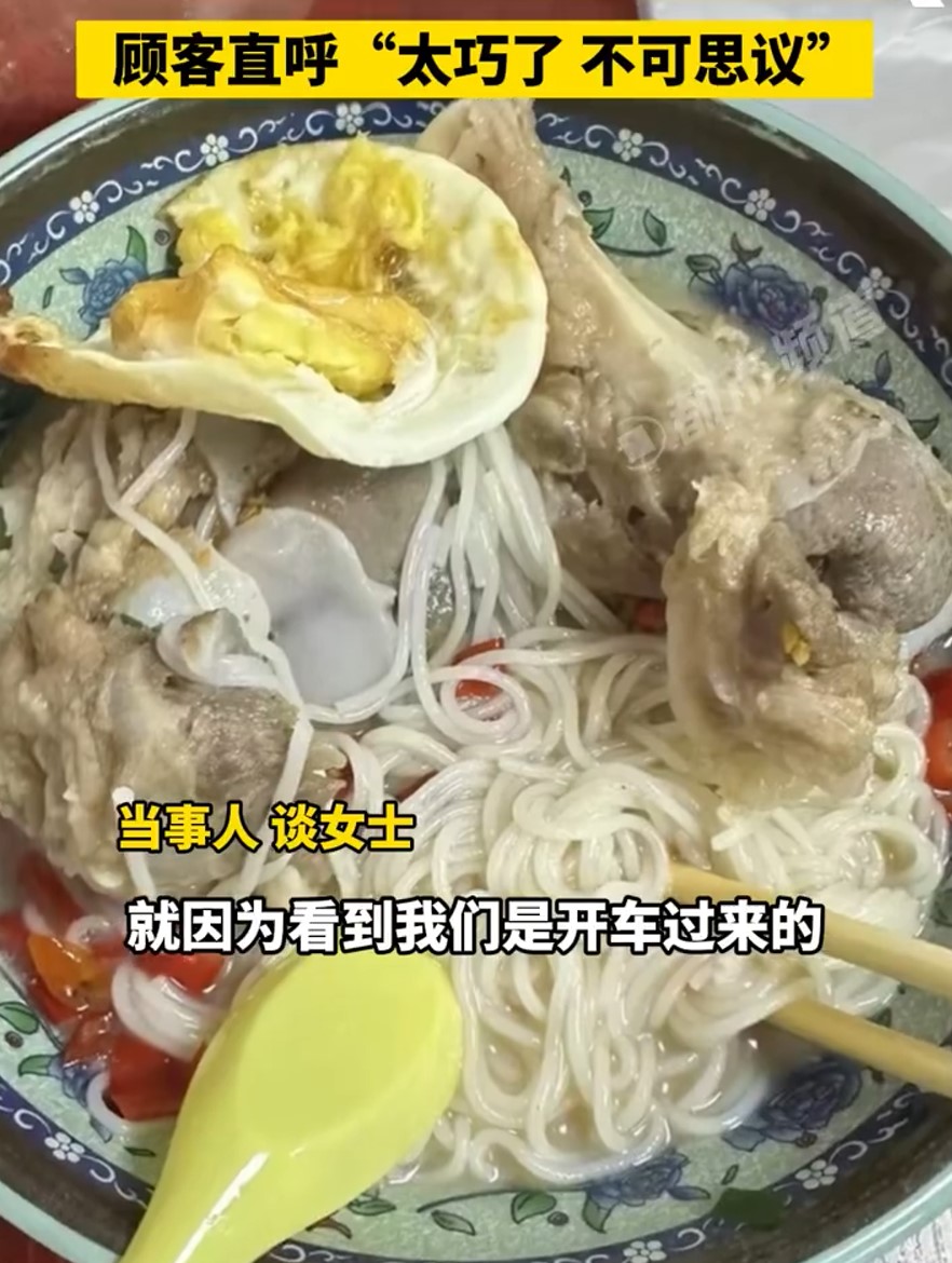 The owner saw that they had driven from far away and noting the rainy weather, generously gave them 30 RMB (S$5.50) worth of extra food for free.