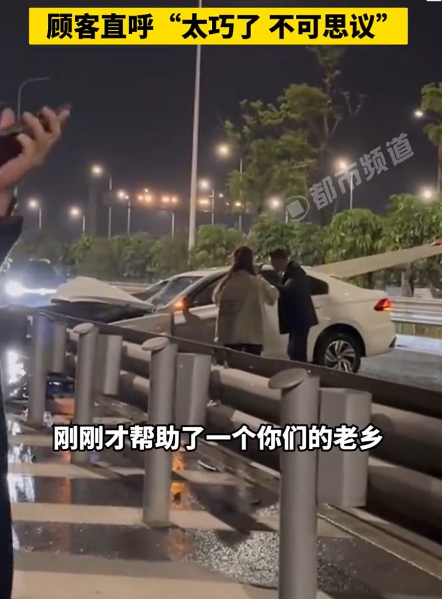 “Does your head hurt? We’ve already called the police, just wait a while,” one of the travellers reassured him.