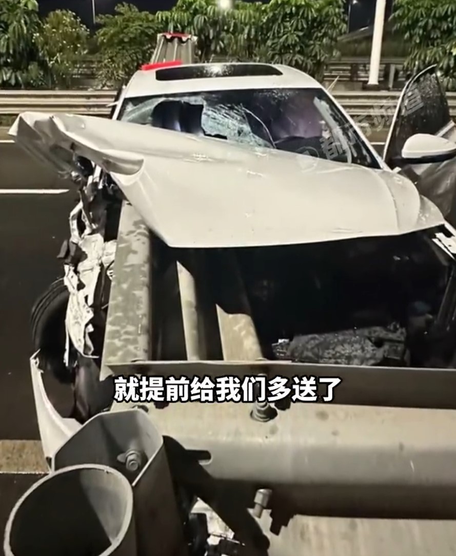 A metal road divider had somehow impaled the car’s front windshield and emerged from the other end of the vehicle.