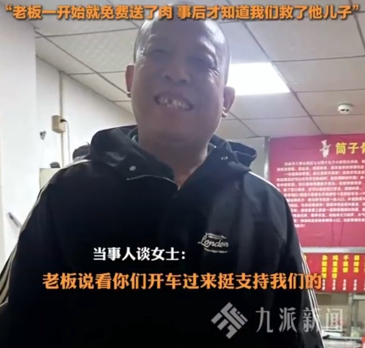 A restaurant owner in China gave some passing travellers free food before learning that they had coincidentally rescued his son from an accident.