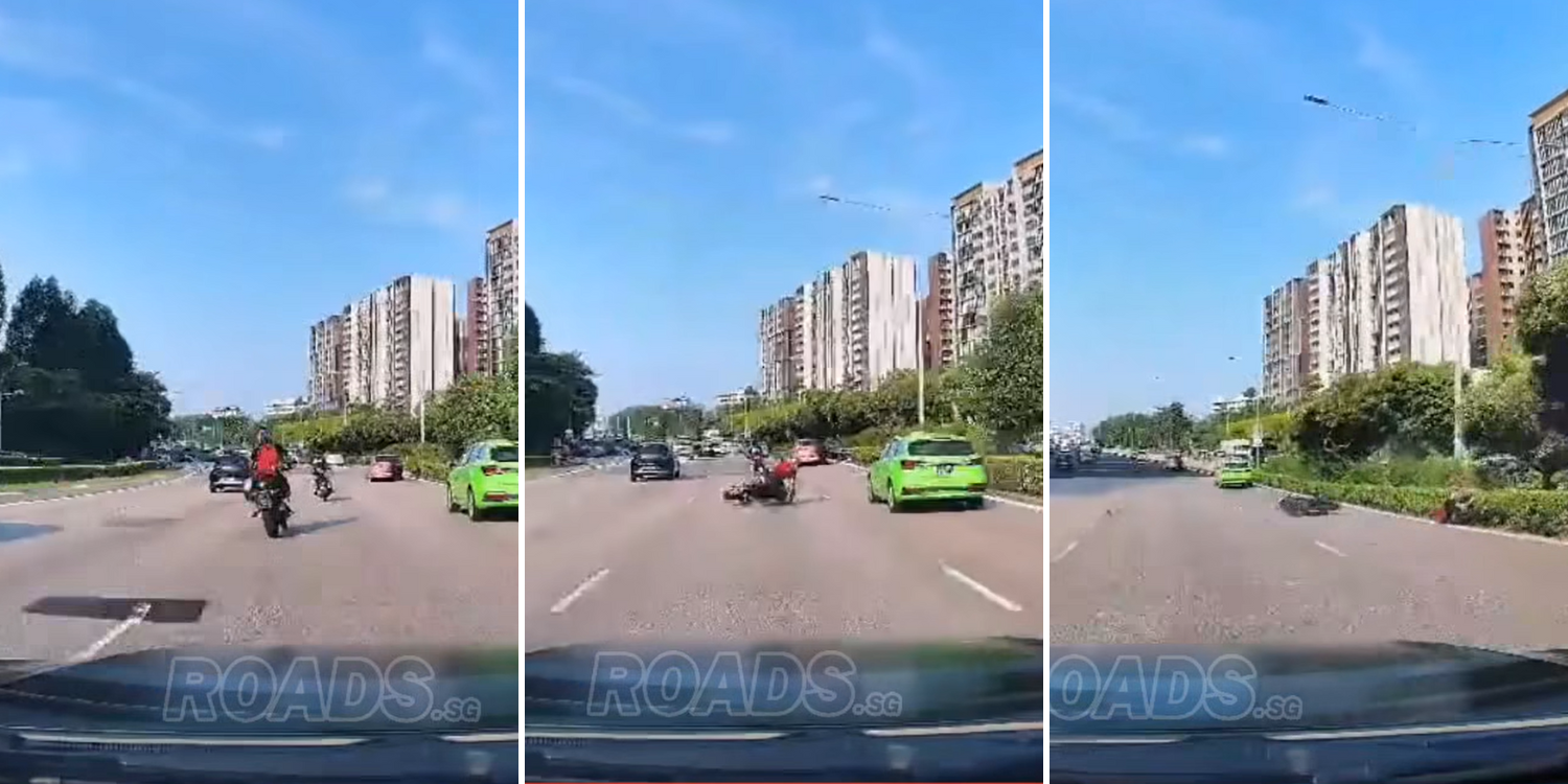 Footage of the accident, posted on the ROADS.sg Facebook page, showed a motorcyclist losing his balance after allegedly riding over an uneven section of the road.
