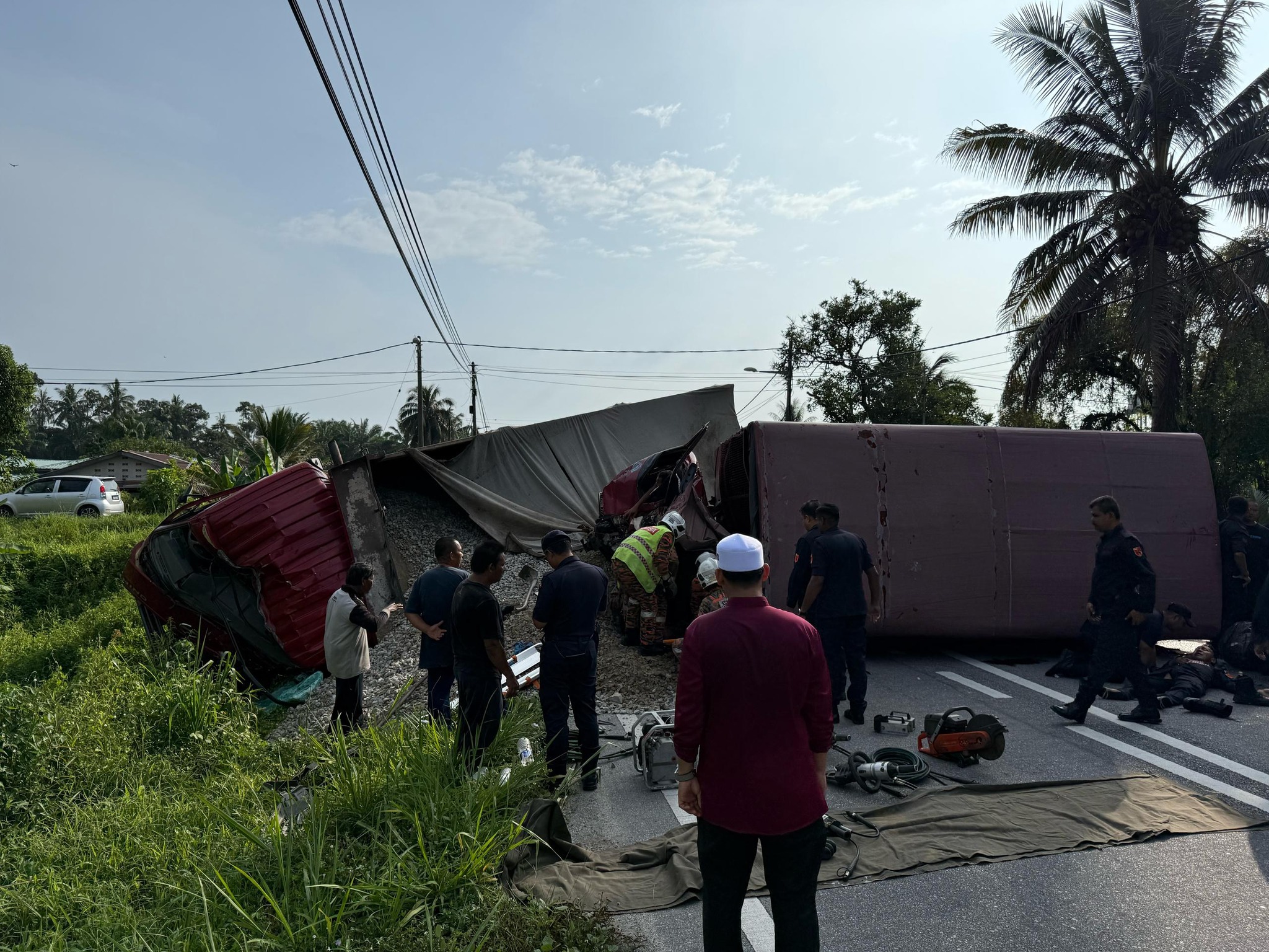 The incident reportedly occurred while the officers were returning to Ipoh after completing crowd control duties in Teluk Intan.