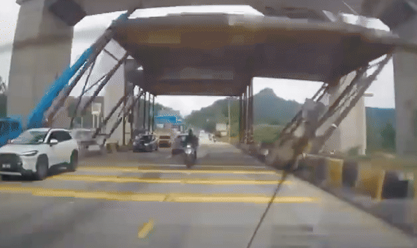 Dashcam footage on social media showed numerous vehicles driving under construction scaffolding for a rail project.