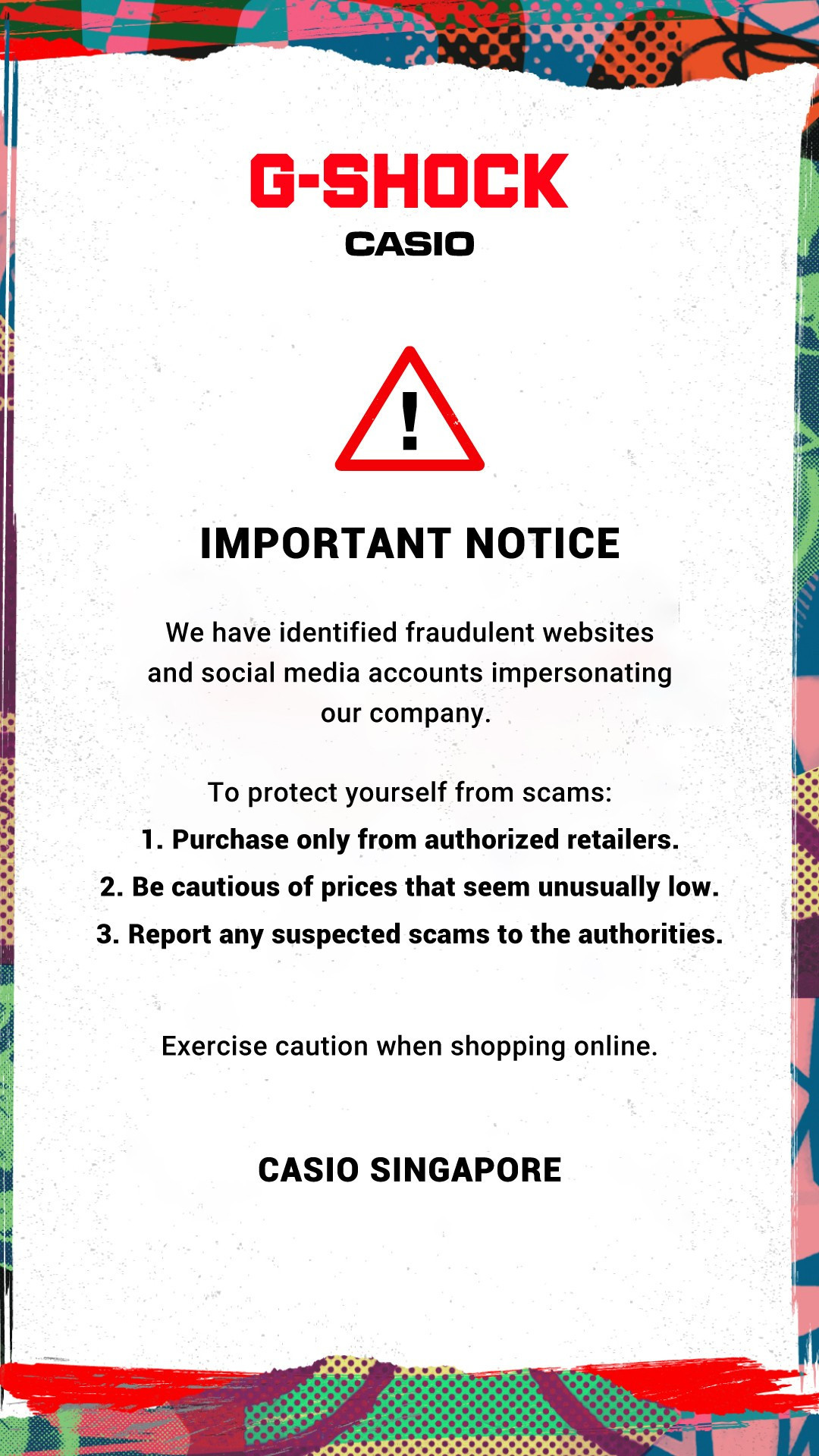 G-SHOCK Singapore has also posted a notice on Instagram, saying they have identified fake websites and social media accounts impersonating their company and reminding customers to be wary when shopping online.