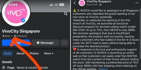 ‘New scam’: Redditor warns of Facebook page posing as VivoCity linking to fake G-SHOCK website