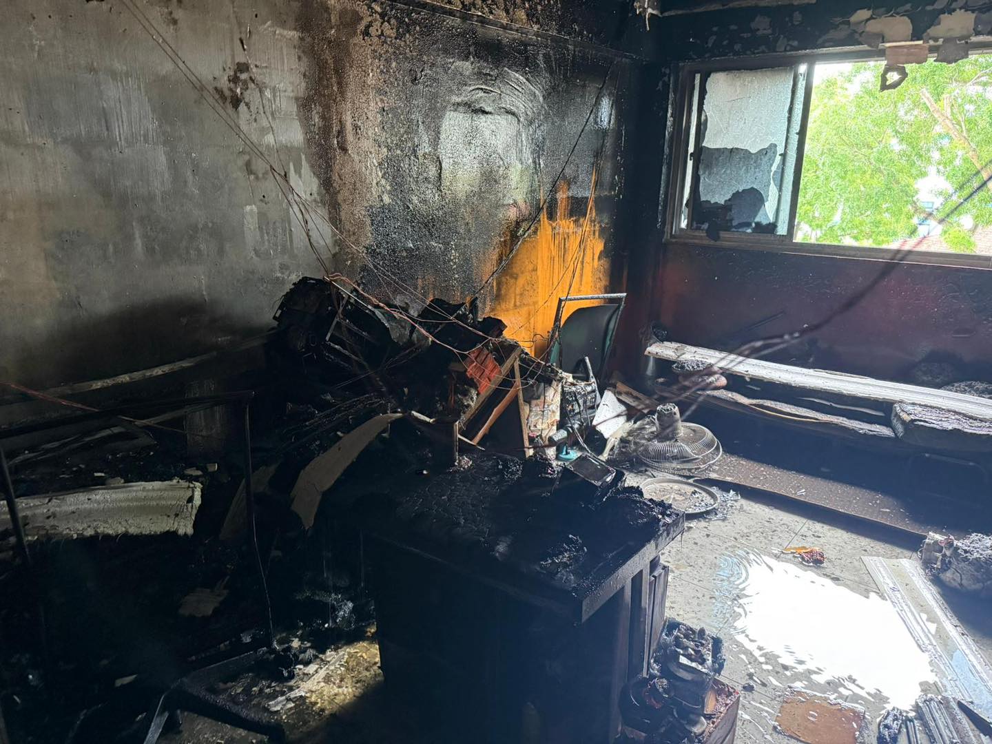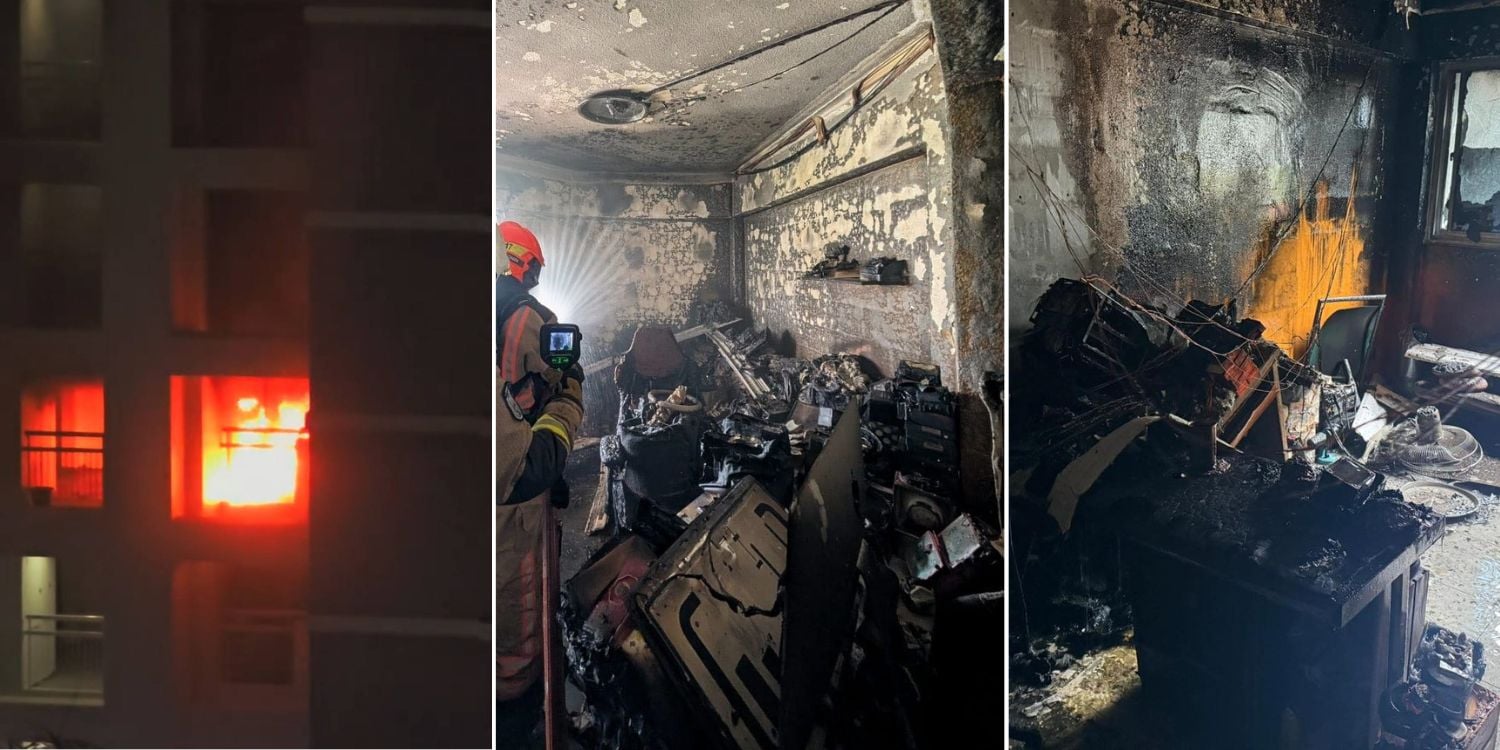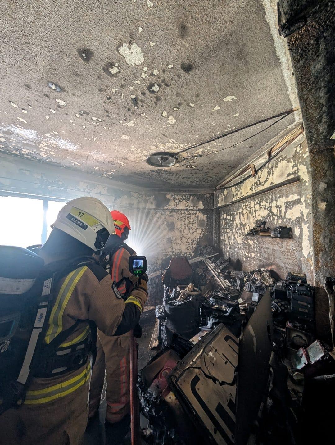 The fire was confined to the bedroom, with preliminary findings indicating that it likely originated from the battery of a power-assisted bicycle (PAB) in the room.