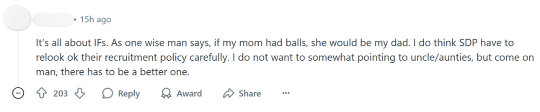 In the Reddit discussion, the OP held nothing back, calling Wong’s performance “very poor” and a “sub-standard reflection of SDP values, attitudes and beliefs”.