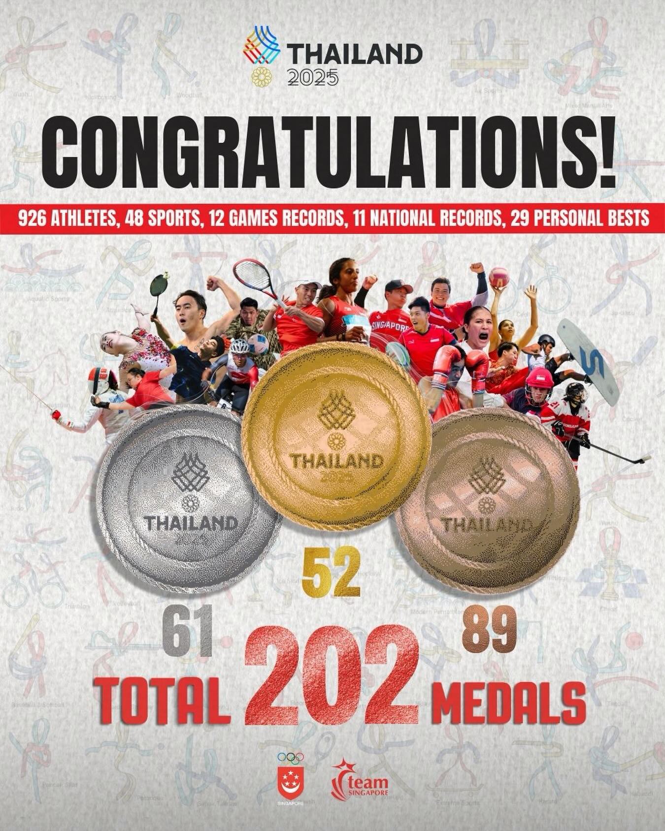 Team Singapore sent a total of 926 athletes to compete in 48 sports and won 202 medals — 52 of which were gold.