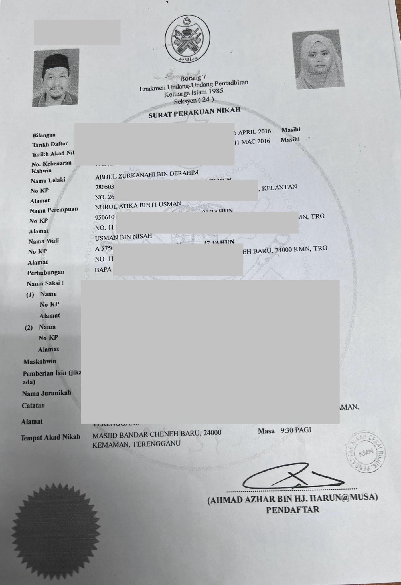 The marriage document reportedly stated that the second marriage was registered on 5 Nov 2024, meaning it had been kept hidden for just over a year.