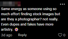 Another commenter compared AI prompting to sourcing stock images rather than producing original work.