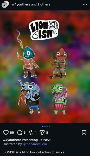 The duo later shared more details of the project on Instagram, revealing four designs in the blind-box sock collection.