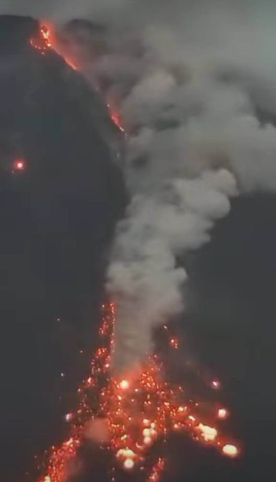 Videos circulating online showed thick ash sweeping through forested valleys and across river channels.