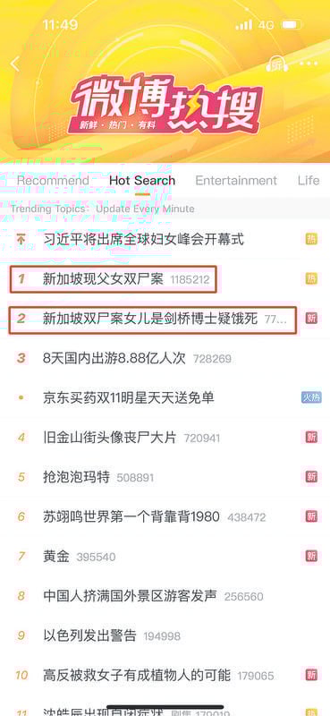 The Sengkang double-death case has sparked widespread discussion across China’s social media, topping Weibo’s trending list on Thursday (9 October), SMDN said