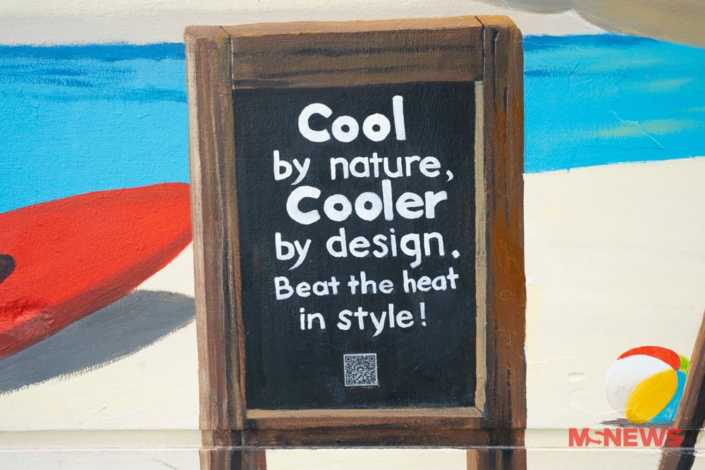 At the heart of the Cool Node is a vivid, interactive mural by local artist William Lee, painted across the wall and floor using Nippon Paint’s COOL-TEC coating.
