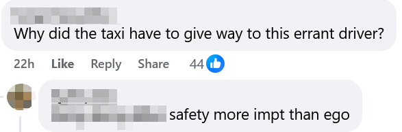 Online commenters were quick to criticise the Mazda driver. One netizen questioned why the taxi driver gave way to the errant Mazda motorist if they were at fault.