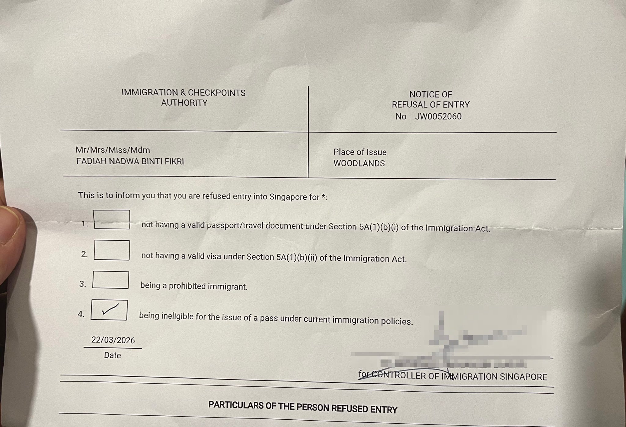 According to Dr Fadiah, she was not told why she was denied entry, despite asking for an explanation.
