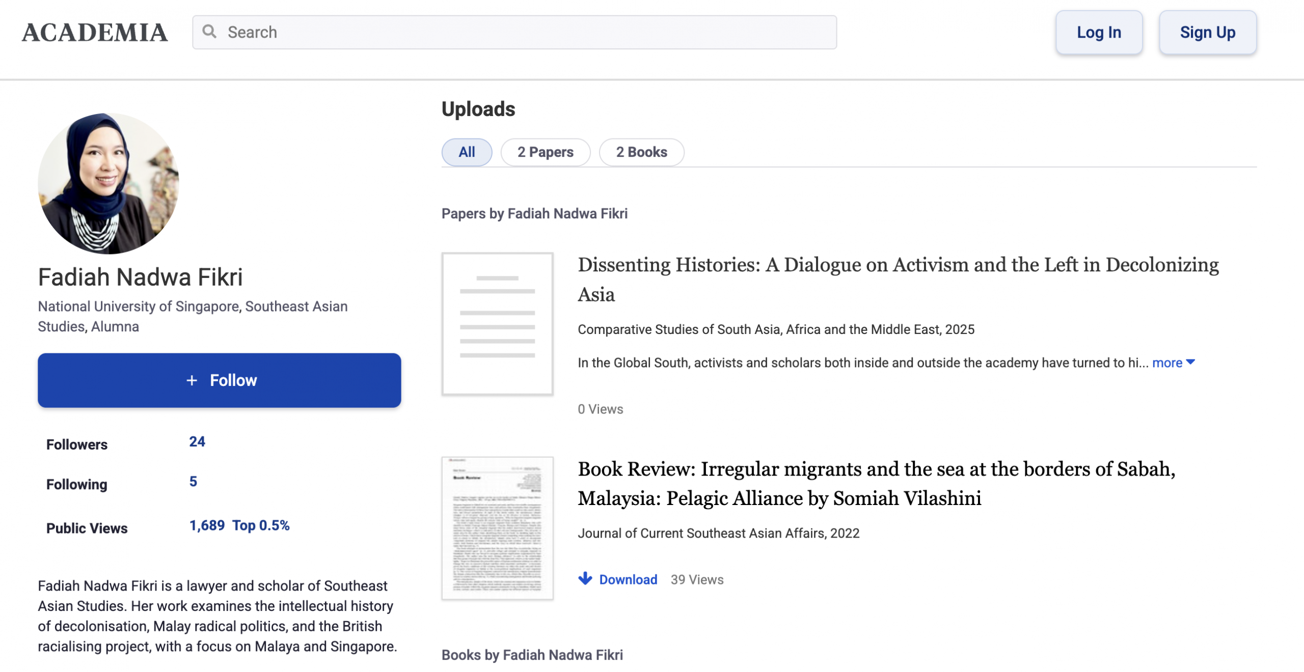 According to NUS, she is a lawyer and alumna whose research focuses on decolonisation and Malay political history.