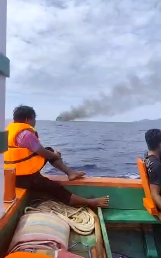 The ship caught fire near an island off the tip of Indonesia’s North Sulawesi province, according to the Indonesian news agency Antara.