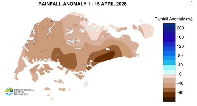 Singapore experienced more rainfall in the first half of April compared with the second half of March, MSS said.