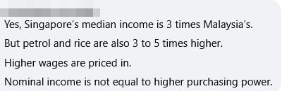 Another commenter pointed out that the perceived “perk” of being Malaysian was the ability to earn Singapore dollars while spending in their home country.