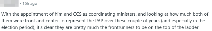 One netizen saw this move as signalling Mr Ong and Mr Chan to be “frontrunners” for the top Cabinet position.