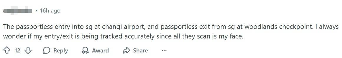 A different Redditor shared that even automated facial recognition systems at immigration checkpoints can feel stressful, as they worry whether entries and exits are recorded correctly.