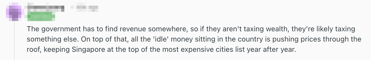 The user made the remarks in a post arguing that the rich in Singapore should be taxed more, and that the country should take stronger steps to reduce the wealth gap.
