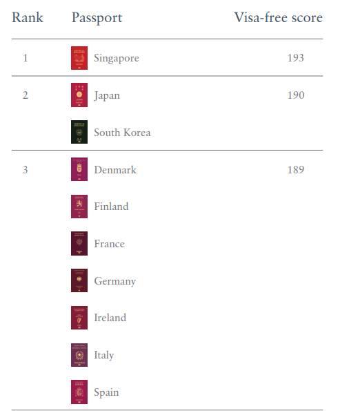 Published by investment migration consultancy Henley & Partners, the biannual index ranks global passports based on the number of countries their holders can enter without needing a visa in advance.