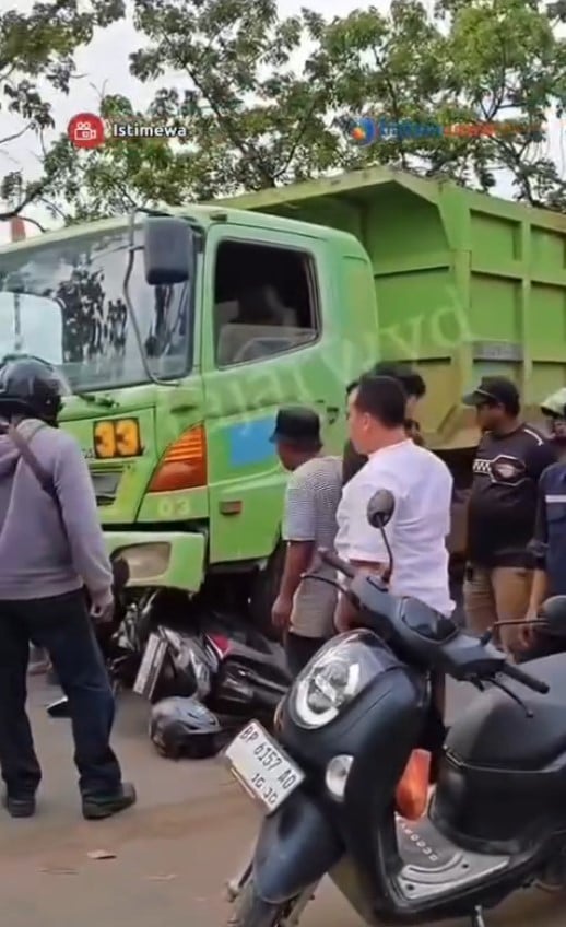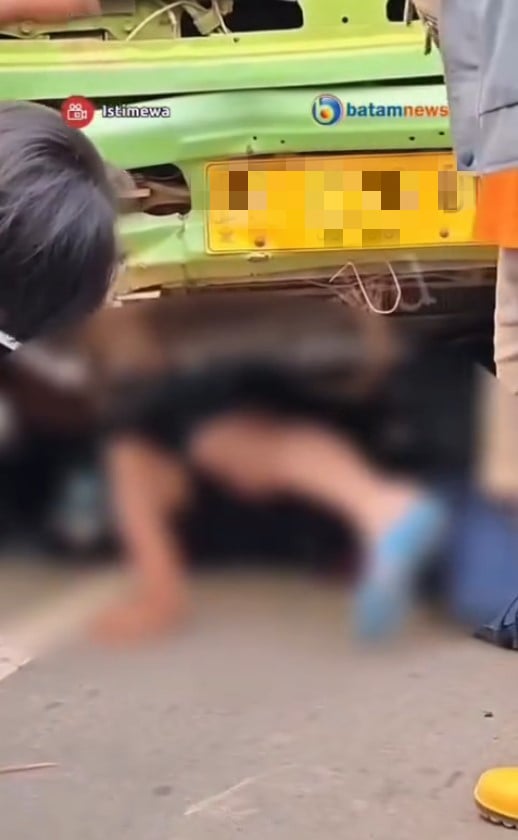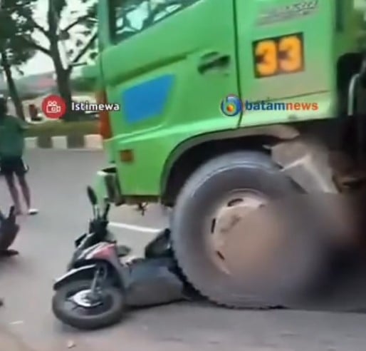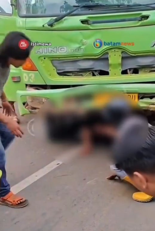Batam News said two people were stuck underneath — one was alive, but the other one was unconscious.