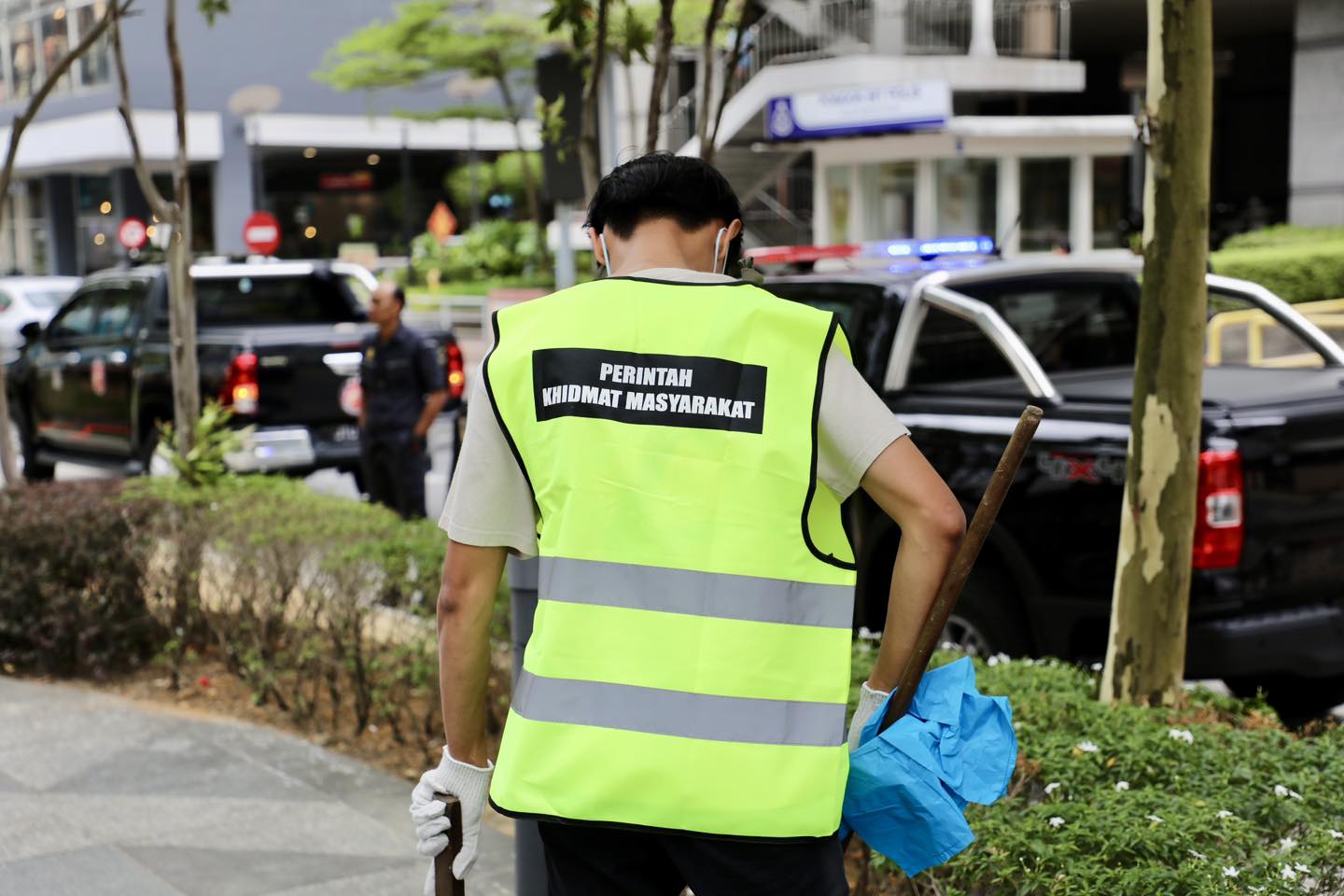 According to photos shared on Facebook, offenders wore masks, gloves and green vests with the words Community Service Order on their backs.
