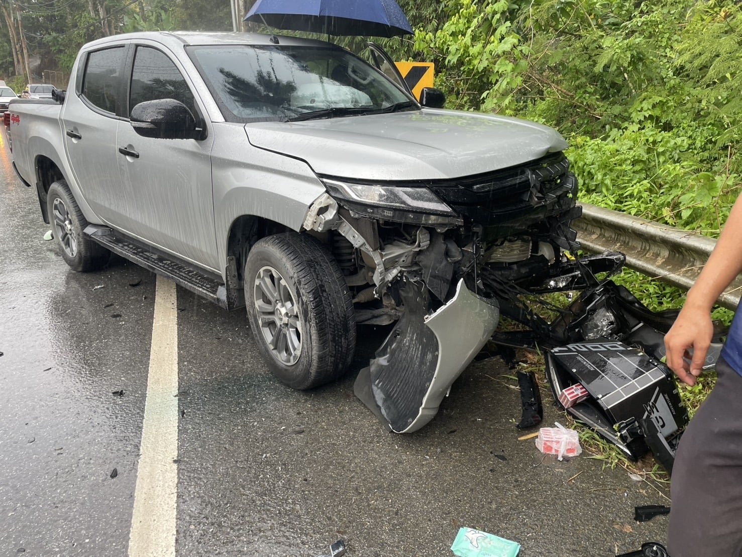 The truck also sustained significant damage, with its entire bumper wrecked due to the impact.