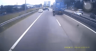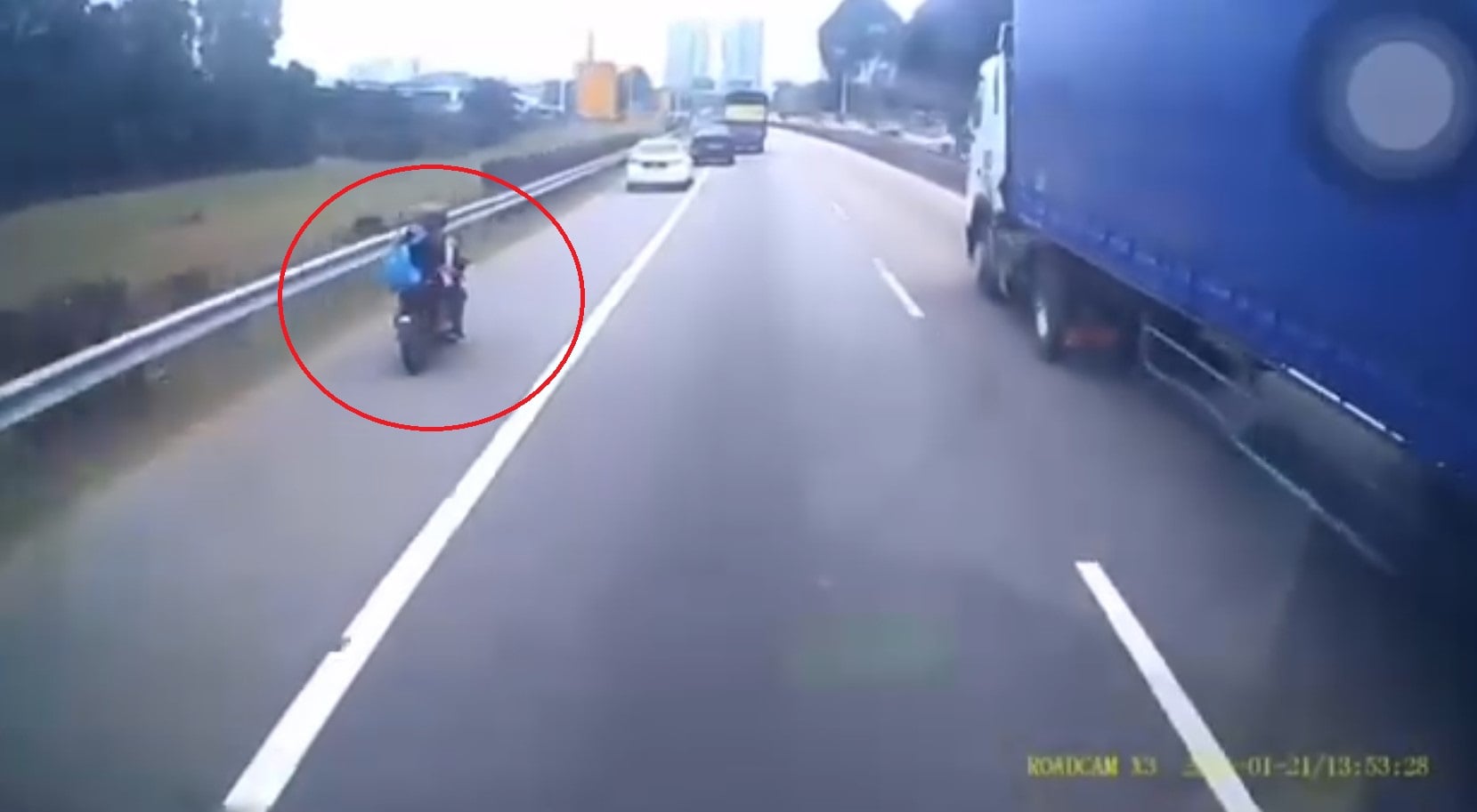 The dashcam footage, which had the time stamp of 1.53pm on Wednesday (21 Jan), showed the duo approaching some congestion from the far-left road shoulder.